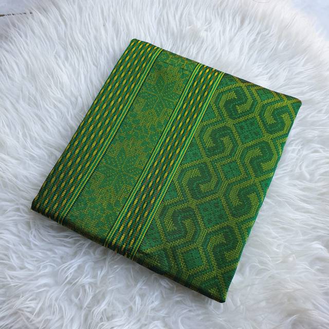 Tenun songket baron 2 warna 2 dimensi Hijau mix Kuning Sumber : shopee.co.id