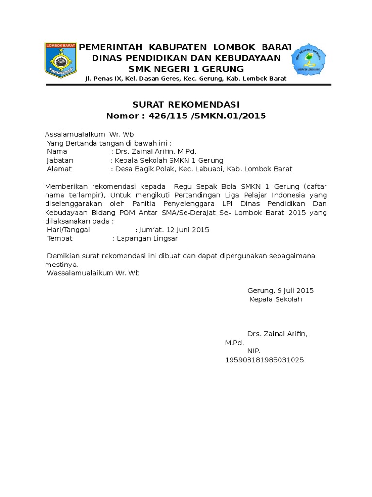 Surat Rekomendasi Dari Sekolah Untuk Mengikuti Lomba Sumber : bagikansurat.blogspot.com